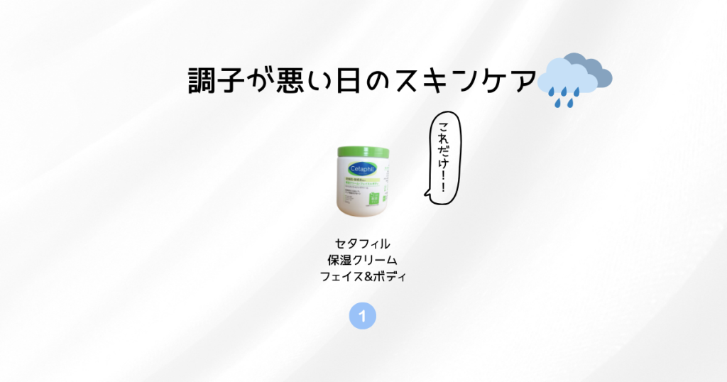調子が悪い日に使うスキンケアアイテムは1つ、セタフィル保湿クリームのみです。